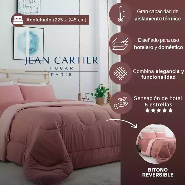 Transforma tu habitación con el elegante Acolchado Bitono Jean Cartier, la opción perfecta para quienes buscan un toque moderno y sofisticado, sin sacrificar comodidad.